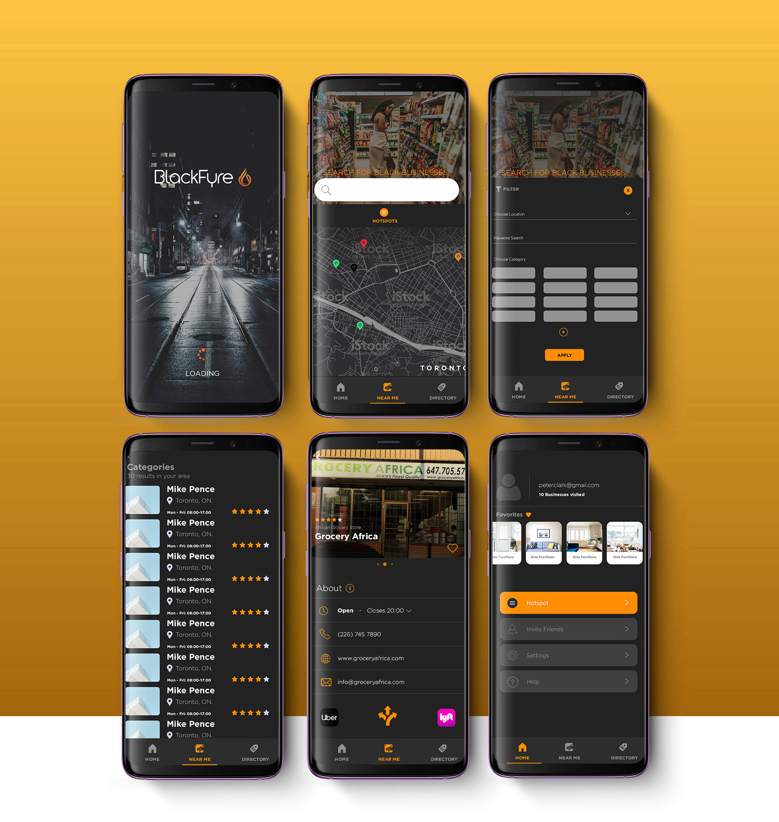 Blackfyre is a platform that connects black businesses to black communities. The purpose of this is to foster interaction, exchange of goods and services between these communities to solve the problem of demand and supply.